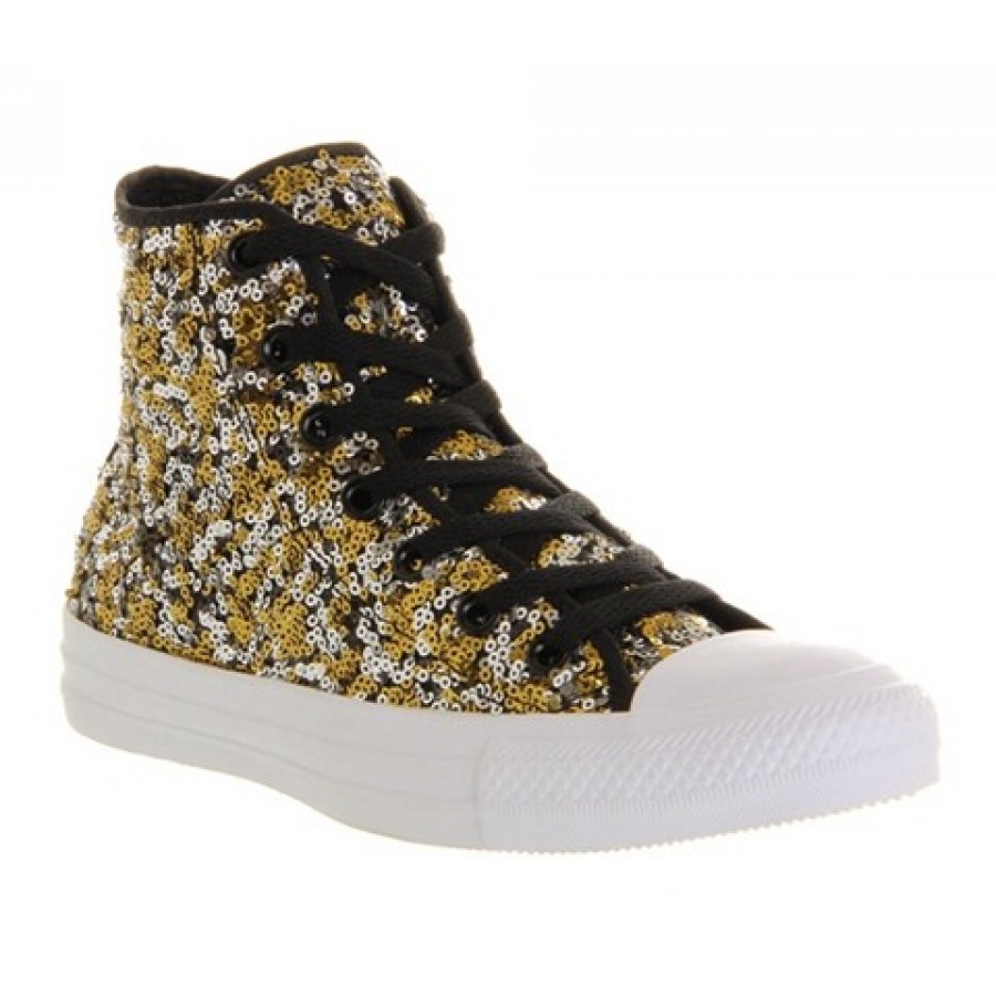Tags: Converse All Star Hi Black Gold Silver Sequin Unisex Shoes, M00000243, All Star